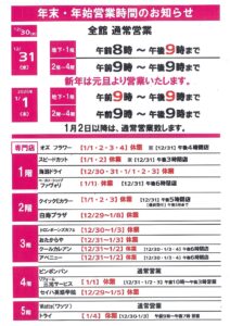 2025-2026_年末年始専門店営業時間_イオン鹿児島中央